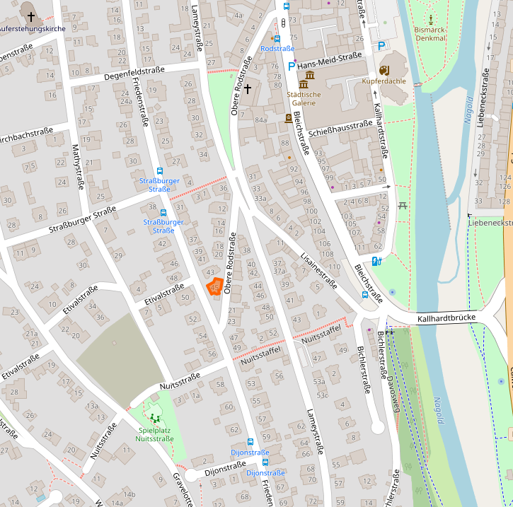 Auch mit öffentlichen Verkehrsmitteln sind wir gut erreichbar: In unmittelbarer Nähe befinden sich Bushaltestellen Straßburger Straße, Dijonstraße und Rodstraße, von denen aus Sie unsere Praxis in wenigen Gehminuten erreichen.